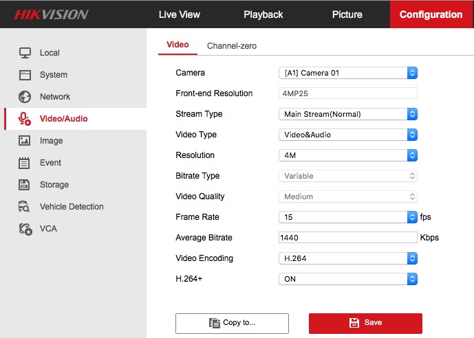 Warning: If your DVR has H.265, you may want to switch to H.264 or H.264+ (as pictured). This is optional but ensure maximum compatibility with browsers, mobile phones, tablets and other devices.
